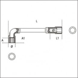 Fourche surbaissée et inclinée à 15° Poignée ergonomique Tête polygonale désaxée et coudée à 15° Anneau avex profil six pans seulement pour la mesure 5,5 mm Ouverture douze pans : 9 mm L : 138 mm b : 4.6 mm