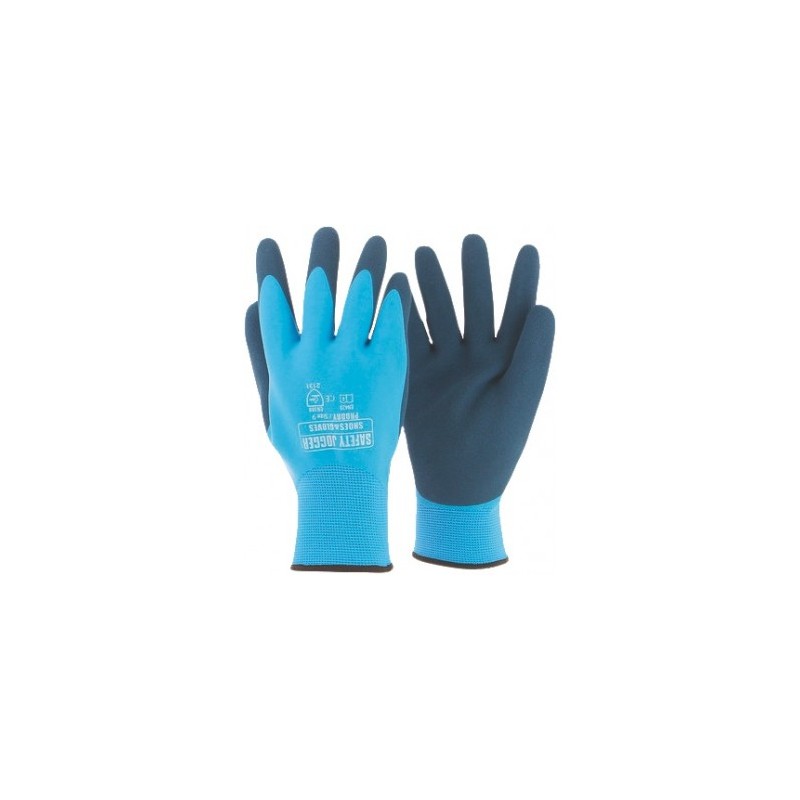 Les gants PRODRY de Safety Jogger sont imperméables et sans couture. Ils sont conçus pour des activités dans tous les environnements et pour toutes les conditions météorologiques. La doublure en polyester/nylon est pourvue d'un revêtement entièrement en latex (couleur bleu ciel) et d'un second revêtement en latex rugueux (couleur noire) sur la paume de la main. Doublure en polyester/nylon avec un confort maximal. Gardez vos mains au sec dans des conditions de travail humides. Couche de latex et mousse isolante contre le froid.
