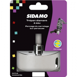 Foret diamant blue ceram Ø20 x 70 mm avec attachement 6 pans Référence : 426 Perçage des grès jusqu'à classe 5 Spécialement conçu pour le perçage des grès émaillés et grès céram de classe 1 à 5 avec une tête segment diamant et une gorge d'extraction pour faciliter l'enlèvement de la matière. – Tête segment diamant. – Gorge d’extraction. – Perçage...